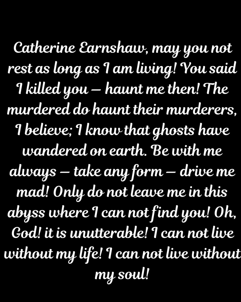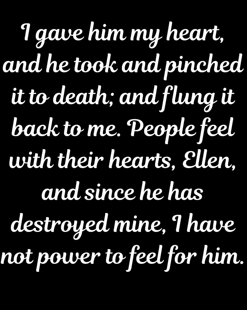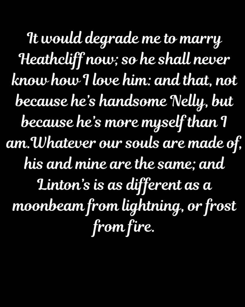 I love the language of the book. But, more than that, I love the characters. There has never been a book for me like Wuthering Heights.. As I said, I’ve read it so many times, I’ve lost count. The biggest reason I love it is this. I begin by liking Heathcliff. As the story progresses, I feel badly for him. I want him to be loved and cared for by someone, anyone. But, his character changes, and I dislike him heartily. At the end, however, I once again love him and want only for him to be loved. The same goes for Edgar Linton. In the beginning, I feel like he is the weakest milksop (truly it’s the only word for him) in the world. Then, you see this amazing man emerge from that beginning. He is, maybe the true hero of the book. But, he comes between the two lovers which doesn’t exactly make me dislike him as much as dismiss him. Then, there is Cathy. I love the wild, wanton child she is in the beginning. She is not to be tamed, and yet, she appears as this demure young miss after staying with the Lintons. At that point, I don’t much care for her. But, her true colors emerge as the book continues. By her end, I am in a bit of a quandary. I really just want to shake her and tell her to get a grip. You can’t, however, do that to a pregnant woman.