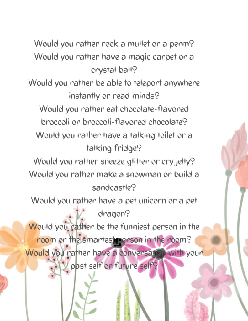 Welcome to the April preview of 10 on the 10th! Doesn’t it seem like we just celebrated Valentine’s Day, and now Easter is over? I guess that’s just the nature of things, right? Last year, we talked about diamonds, and as much as I’d love to do that again, we won’t. I think it’s time for your favorite and mine…Would You Rather!! I realize I’ve only given you a few days to prepare, but I’m very sure you’re up to the task! As always, there will be a link party, too, so feel free to share this with your buddies!