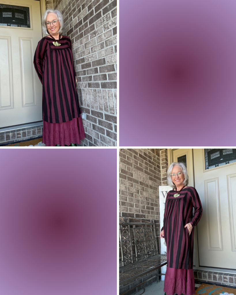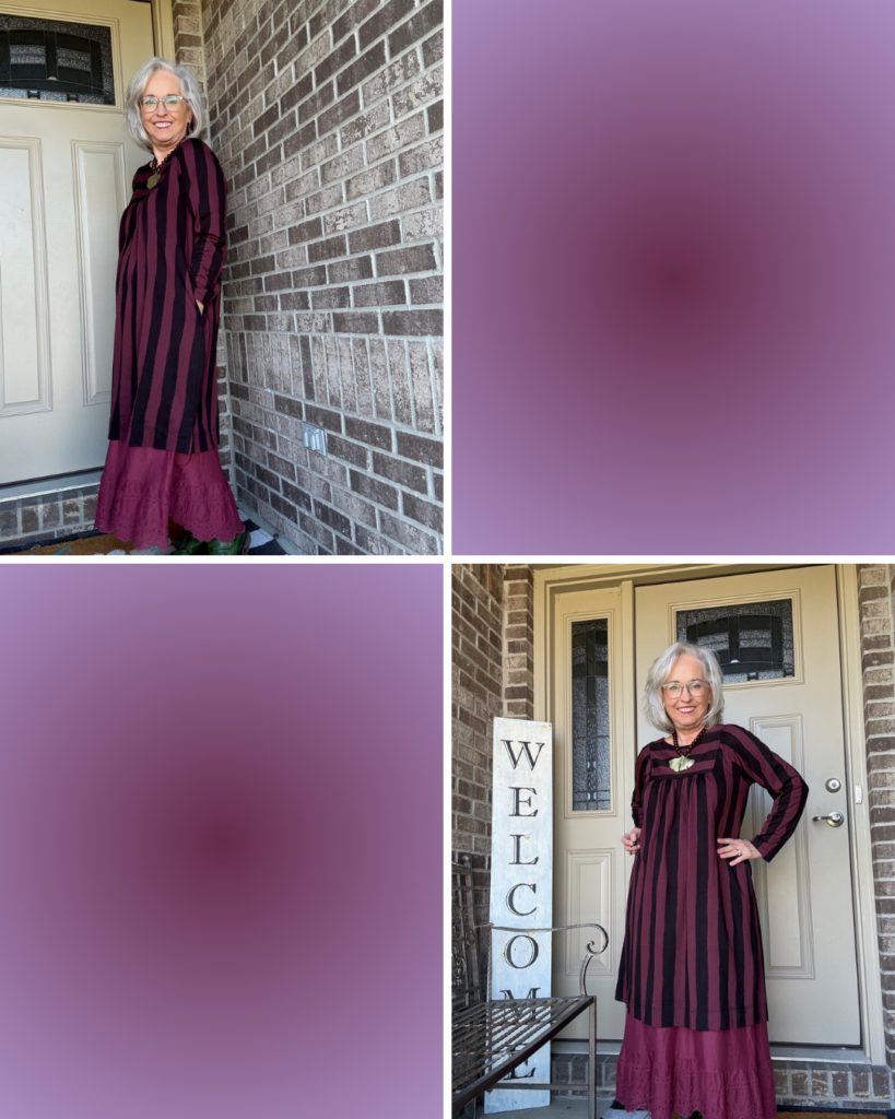 Fast forward several years when I began teaching and needed an entirely different wardrobe than I’d had as a mom and a college student. If you shop at Macy’s, you may remember the house brand, Karen Scott. It seems to have been replaced by Style & Co. The quality of the line is probably a hair better than what you’d find at Target. Those are the clothes I bought when I first started teaching. Then, I discovered Talbots, J Jill, and Coldwater Creek. I began to cultivate a professional woman’s wardrobe. I also discovered April Cornell around that time and would add pieces from time to time. There was a store in Indianapolis, and my husband would treat me to a new dress or two for my birthday every year. It was a sad day for me when the store closed. I liked being the only person wearing a particular dress or skirt.