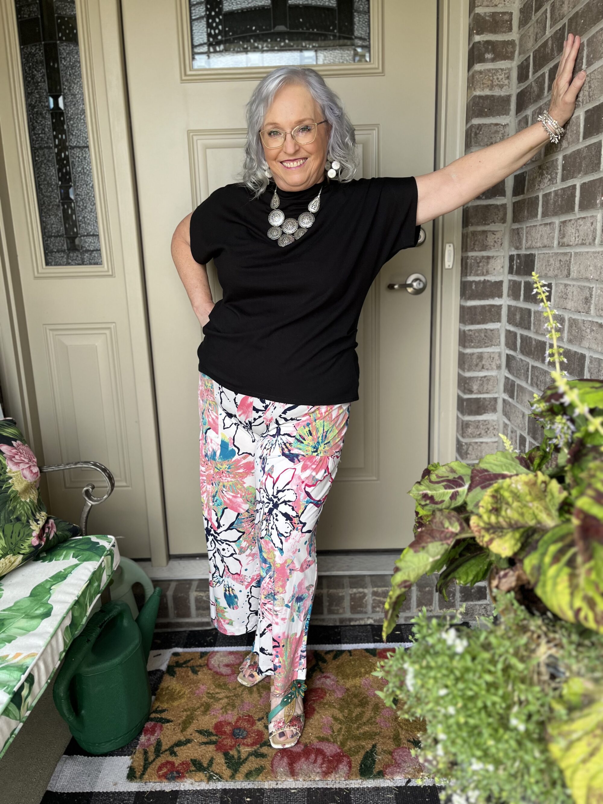 These pants are so fun, Marsha! And I really like the unique style of the top, too. I think you will find both of these pieces super versatile. Now that my kids are back to school, I have to up my exercise routine. I still do my early morning gentle yin yoga but I definitely need to incorporate some more cardio exercises. How great that you are cleared for exercise now. I hope you find the perfect routine for you!