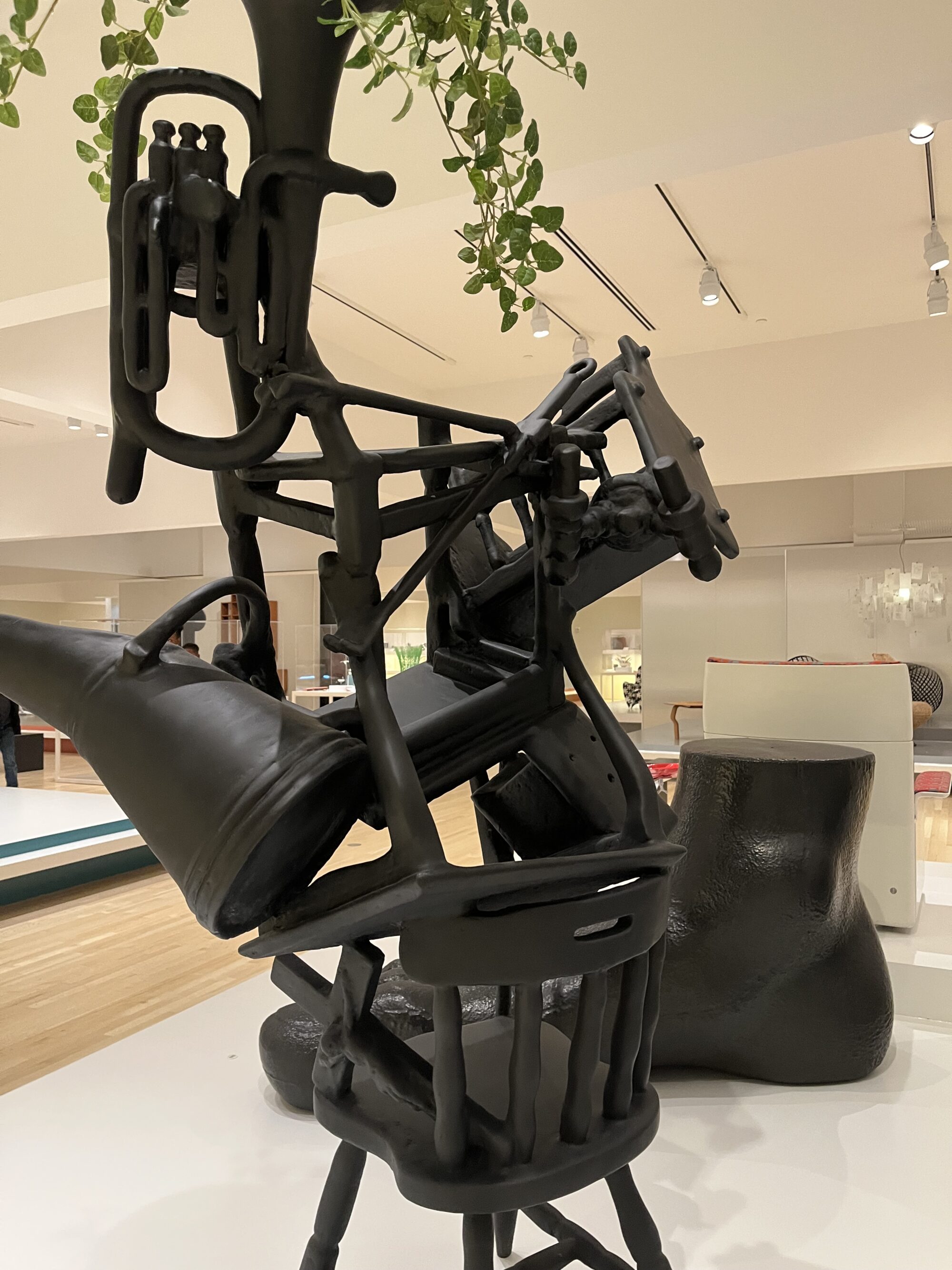 I truly love this quirky piece of art/furniture. Maybe, it’s because it was the subject of my very first presentation in my docent training. Maybe, it’s because it’s black! I don’t know, but I really do like it. If you’d like to read more about why I chose it, you can find that here. If you’d like to read more about the artist, the art, and my interpretation, you can find that here. I’m so happy to show you this week’s Gallery of Style and the bloggers who have interpreted Hey Chair Be a Bookshelf bookcase by Maarten Baas!
