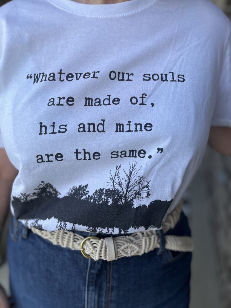 I have been on the lookout for the perfect denim skirt for ages. I discovered this one from Ann Taylor in my closet. I have no idea when I bought it…oops! It’s not the perfect denim skirt, but it will be on repeat this summer. The graphic tee is my all time favorite quote from Wuthering Heights. In fact, Nigel had it made into a very large poster which hangs in our bedroom. It’s very long so I need to figure out what to do with it. I watch those videos of people cutting here and there to create a different look. I’m going to have to experiment on an old tee I really don’t like to see what I can do.