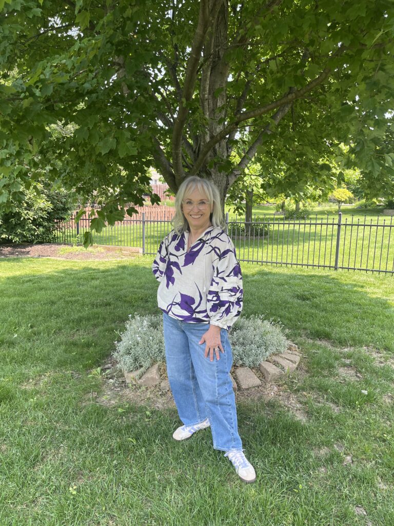 1. Couldn’t agree more that those silly fashion rules are meant to be broken . We have earnt the right to wear whatever makes you feel good . I can tell that the wider jeans and that pretty shirt make you happy as they should because they are perfect on you.