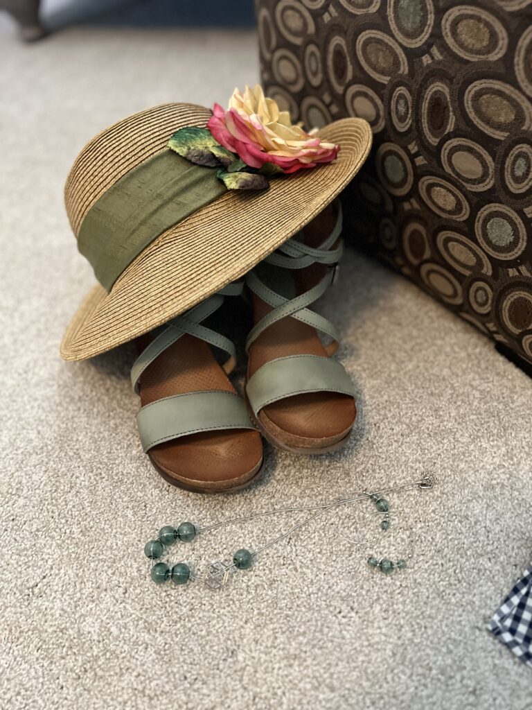 I’m going to start with my jewelry! I found the necklace and earrings at the museum gift shop. Those little balls are glass! Yikes! I’ve stored them in their original box swaddled in cotton. These are the Shay sandals from Miz Mooz. They are as comfortable as they are cute! I really like the zipper on the side. I mean, could you imagine fastening all the little buckles? My hat is the Rose Sunhat which is, unfortunately, out of stock. I hope you saw my video on Instagram when I was trying to be Mary Tyler Moore!
