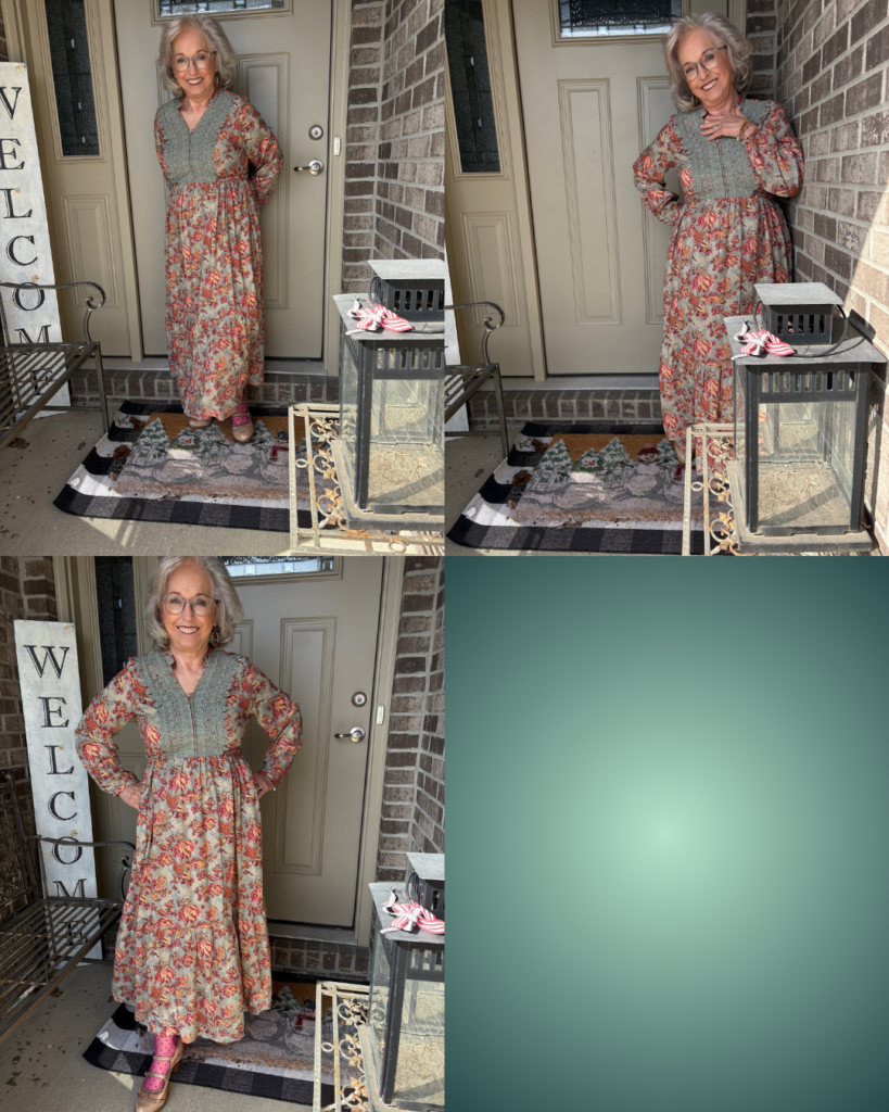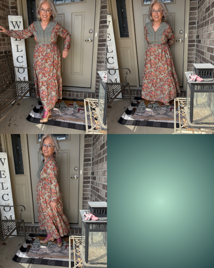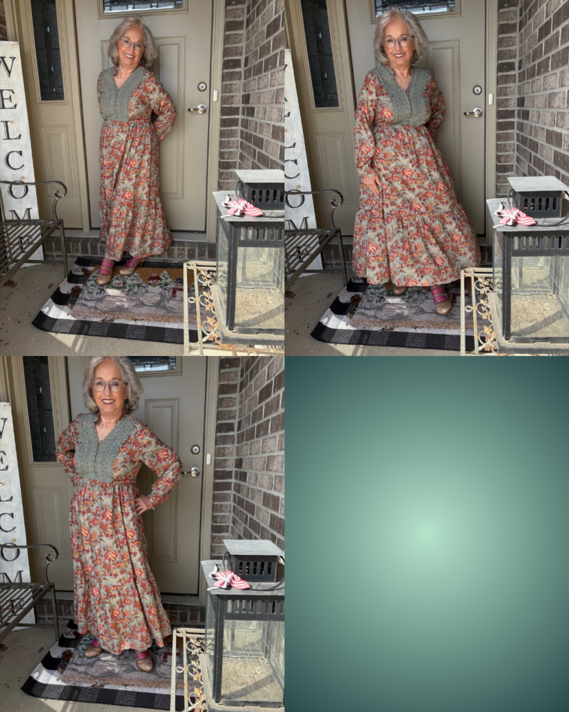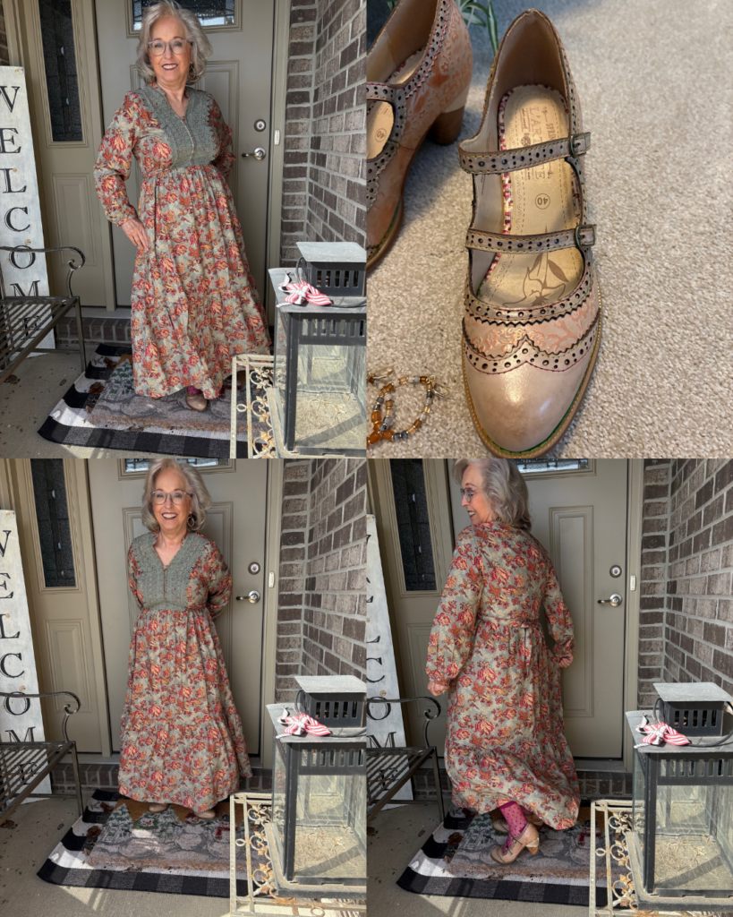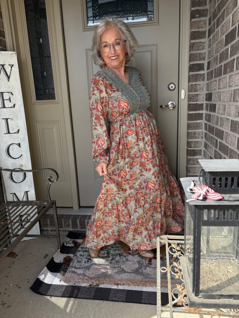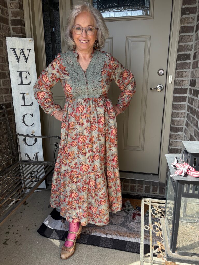 I bought this dress several weeks ago. My iron broke so I wasn’t able to press it. Yes, I still use an iron. I actually love ironing because it’s one of those things you can do that gives instant results! But, I digress! This is the Marseille Lace Dress in Smoky Teal from April Cornell. It’s on sale right now. I’m not sure if you can use my code, MARSHA15, on sale items. I adore this dress…the color, the print, that glorious lace on the bodice! It is tiered, but the tiers disappear in the floral print. And, my friends, it has pockets. It’s a rayon blend which means it’s a three season dress for me. For some strange reason, the website says it’s grey. It’s a light teal, but it definitely has grey undertones to it. I also love that it has true long sleeves. Those are kinda rare at April Cornell. If you like this dress, check out April’s Attic because there are lots of bargains to be had!