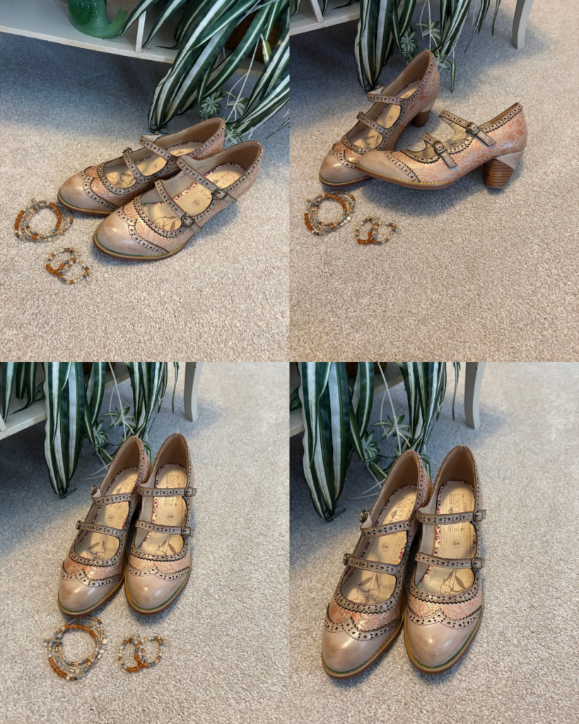 I have wanted a pair of Mary Janes for a while now. I also wanted a pair of actual heels, too. May I present the L’Artiste Gaviria Shoes! And, while beige is not my favorite color, these were perfect in beige! I thought they were the exact right footwear for this dress. I can also see wearing them with longer jeans, shorter dresses, midi skirts…you name it! Since I wanted the lace and the print of the dress to be the stars, I went with fairly unobtrusive jewelry. The earrings and bracelets are from J Jill. The bracelets have a little doohickey that can be undone to separate the bracelets into four separate bracelets.