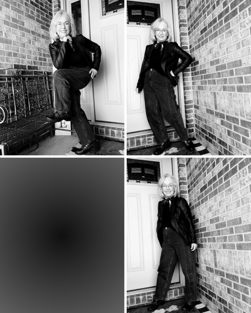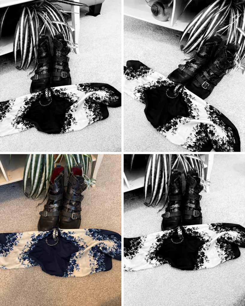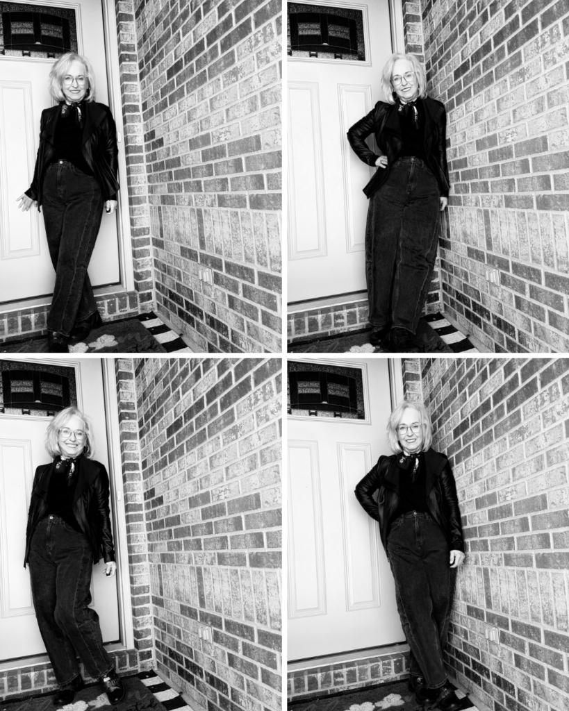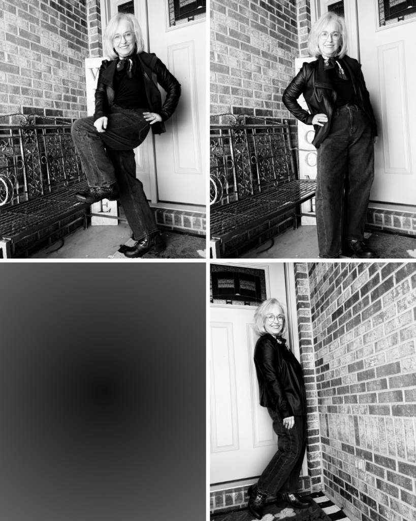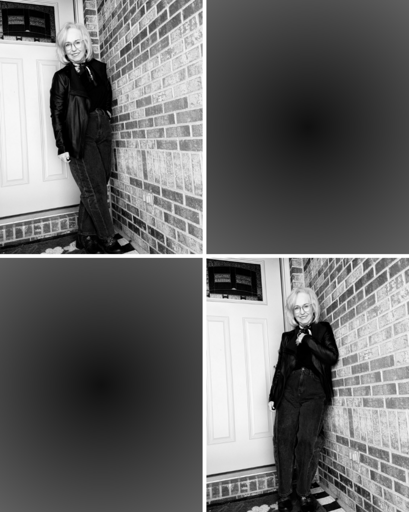 Like I do with everything, I never think about what I’m going to wear when I pick something out. I just really love this song and figured the video would give me some ideas. Hahaha!!! I was pretty sure I would wear my black leather jacket, but I wasn’t sure what to wear with it. The one big thing that stood out to me from the official video was it’s shot in black and white. So, I decided to do the same. I’m wearing Old Navy barrel jeans in either the black wash or the grey wash. Honestly, I’m not even sure if these are the same jeans because I got mine last fall. The Luxe Crew tee is also black and from Old Navy. The leather jacket is really, really old. I got it at the NSale when we first moved down here. It has fabric on the inside of the arms. I’m not sure if that makes them less or more comfortable. But, I’ll tell you this leather is like buttah! It is the softest leather jacket I’ve ever owned. If you look closely at the video, every once in a while, Joan is wearing a scarf tied around her neck. Talbots has this beautiful print called “Exquisite Blooms.” I love the print, but I didn’t like anything in it until I found this scarf. I knew square neckerchiefs were trending, and I had a reward on top of some kind of sale. That meant this scarf cost me next to nothing.
