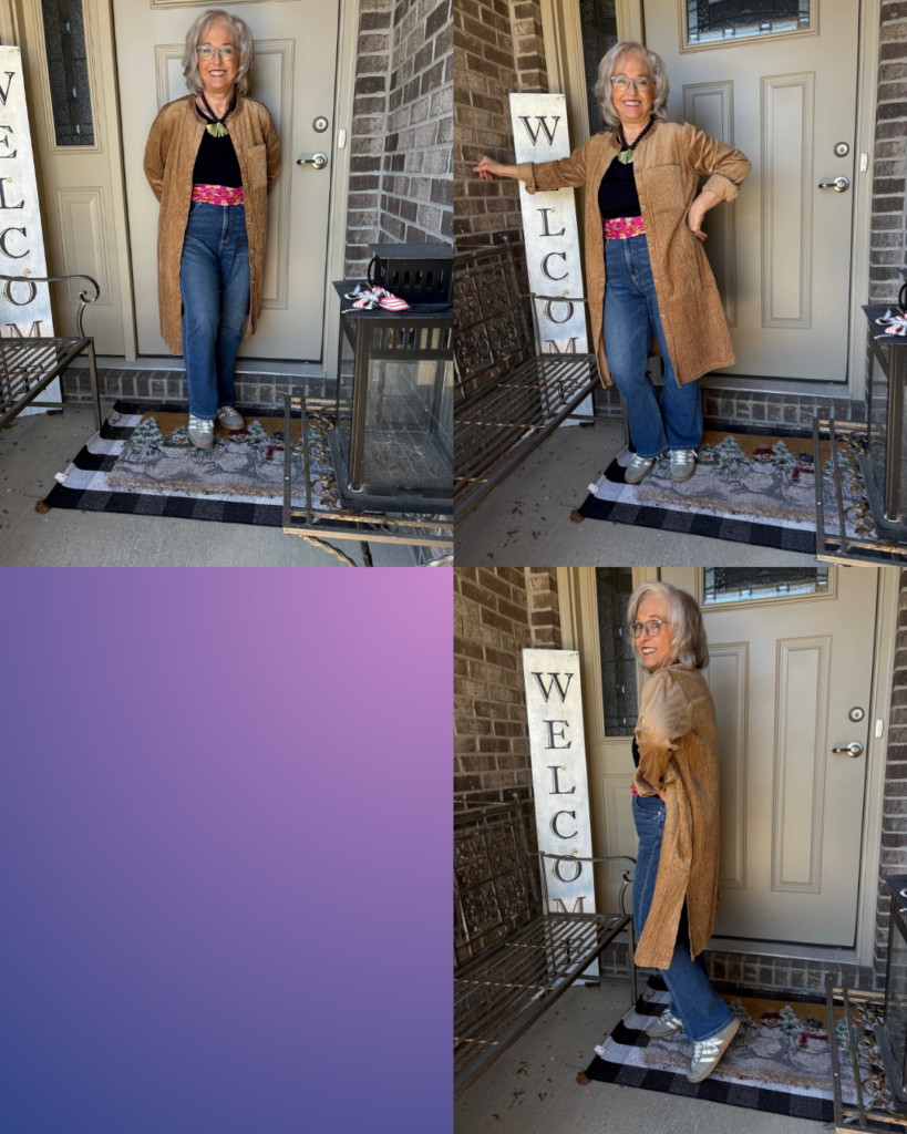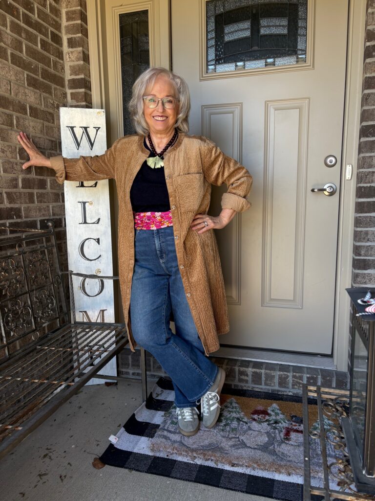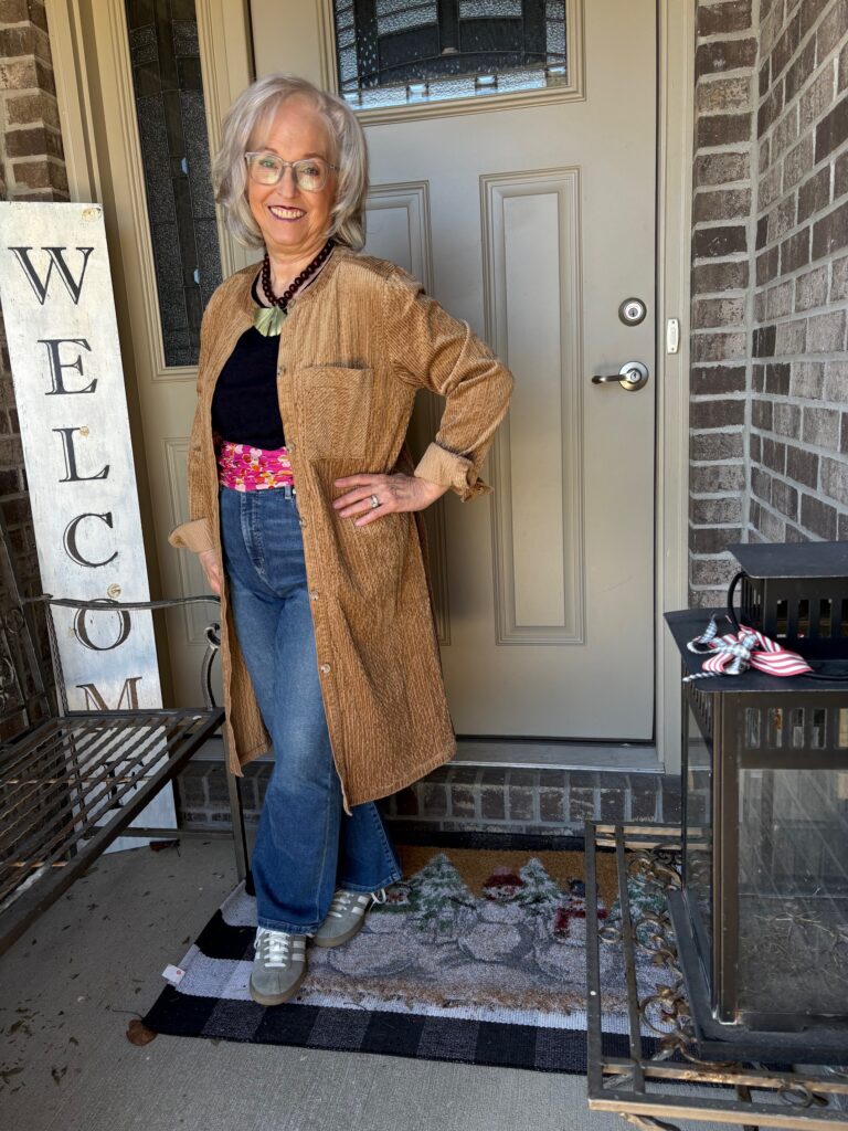 4. That duster is fabulous, Marsha! I love the colour! I also really enjoy seeing you in jeans and sneakers for a change.