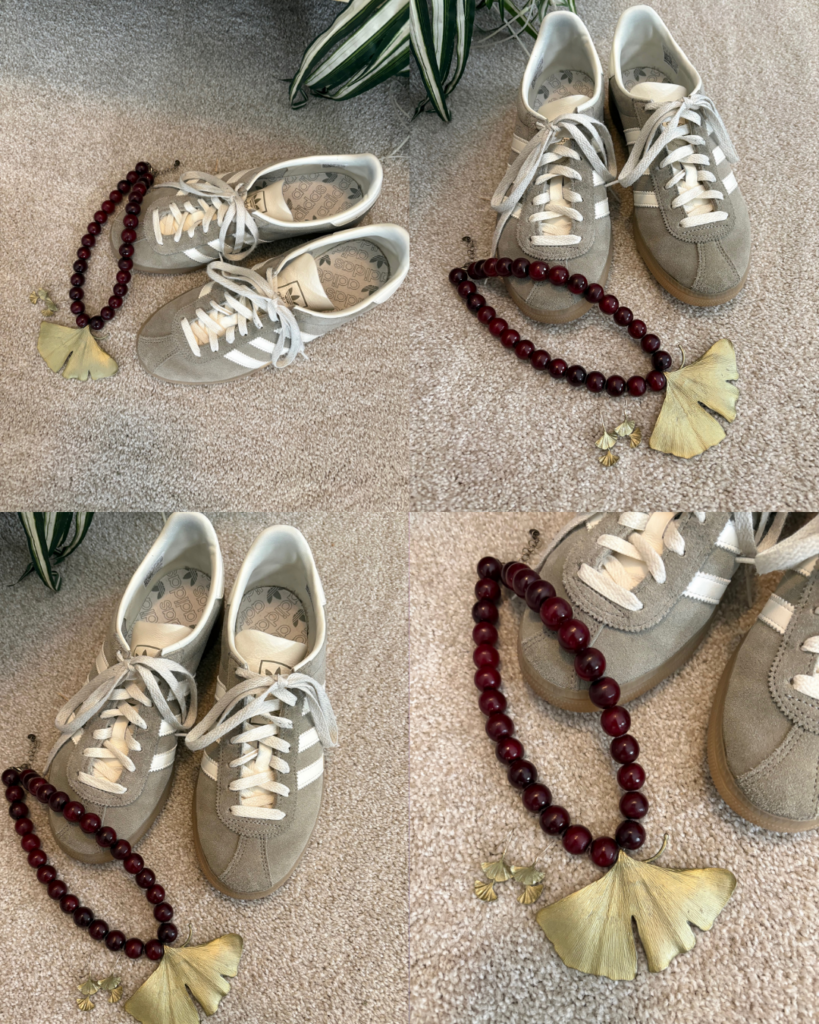 I really, really hope Adidas comes out with more colors of these sneakers. I have them in blue as well as my Adidas Sambas in a beigie color with lavender stripes. These are my München Sneakers in the silver/off white/silver color. They are even more comfortable than my Sambas! As I looked at the artwork, I noticed our Frida was wearing red beads around her neck. That informed my decision to pick this beautiful necklace by Michael Michaud. My necklace doesn’t appear on his website, and the earrings that are similar are larger than mine. I bought both the earrings and the necklace at the museum gift shop.