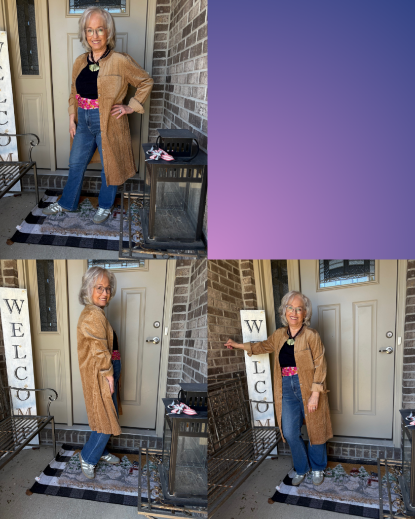 I just love how you wore the scarf around your waist…it really set the outfit to make it fabulous, and the duster is a great option.