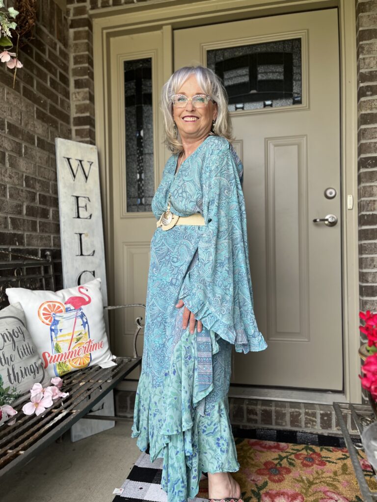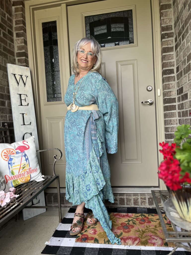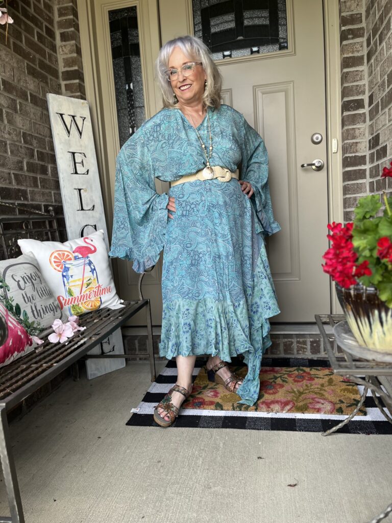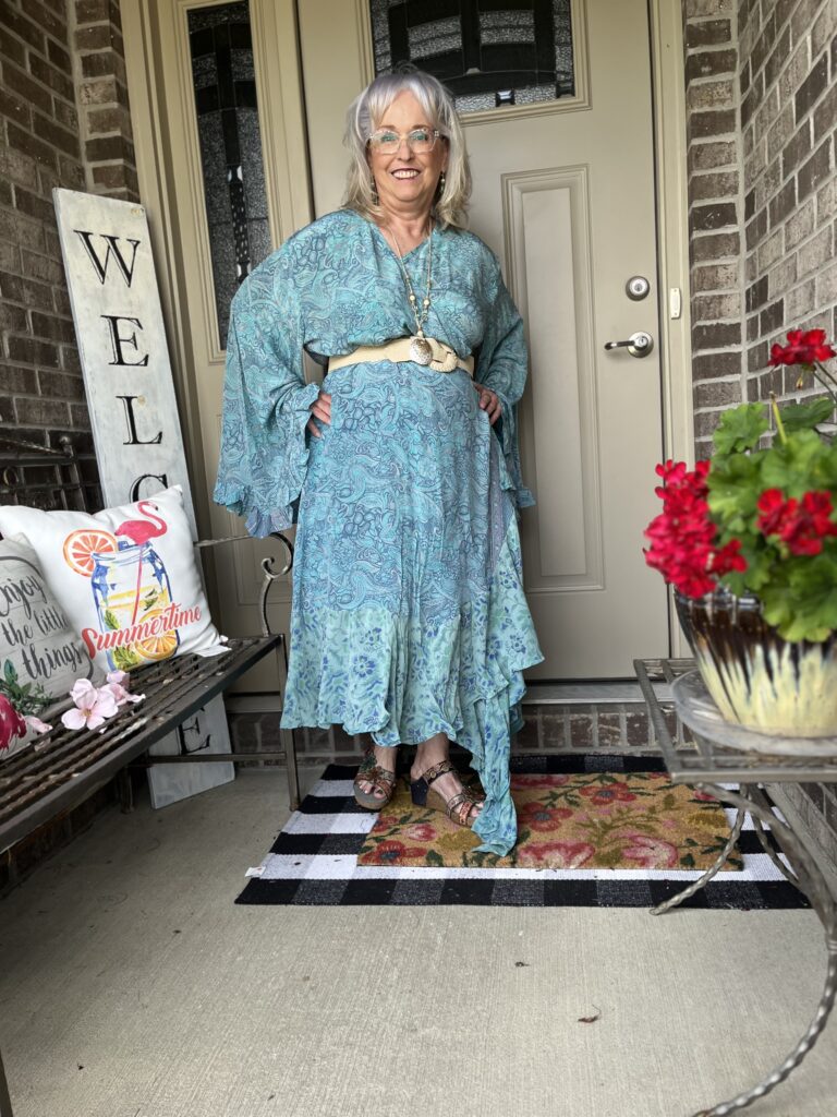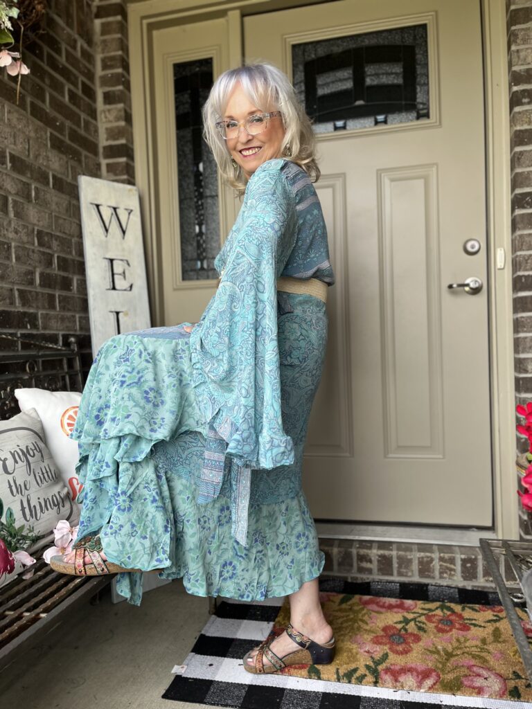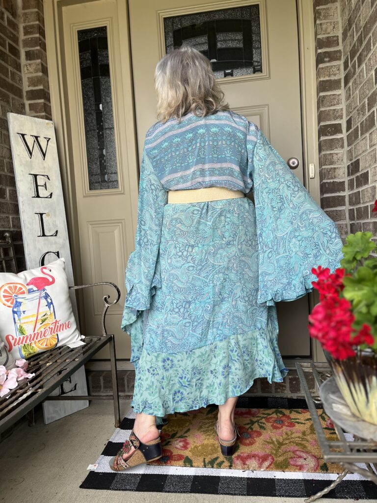 Thanks, Shelbee! I kept looking at the painting but on different devices. It wasn’t until I really looked at it on my laptop that I saw so many greens. But, I had already committed to the blue! The only problem with that wonky piece is it wraps around my legs as I walk. I honestly wish I knew what they were doing with it on the Kantha Bae site. I don’t follow them anymore as my email and my feeds on social were just inundated!