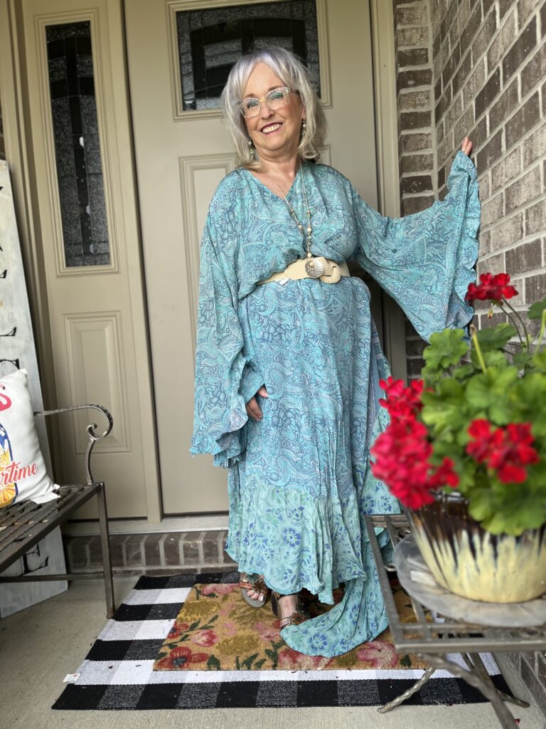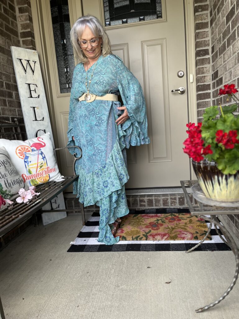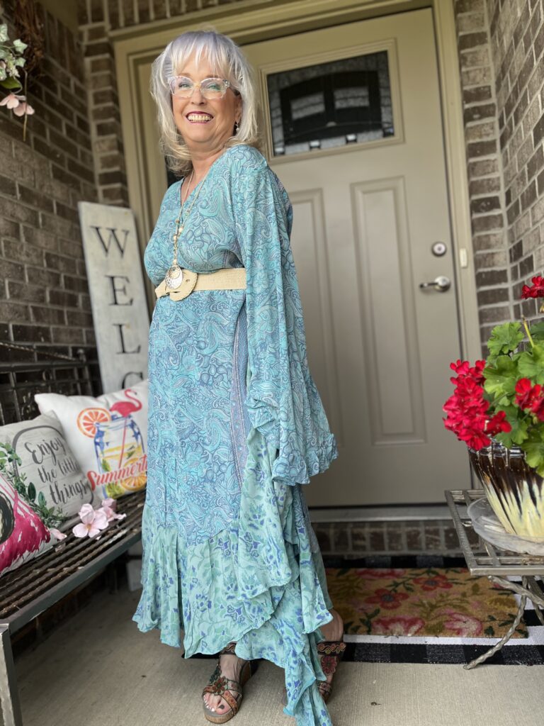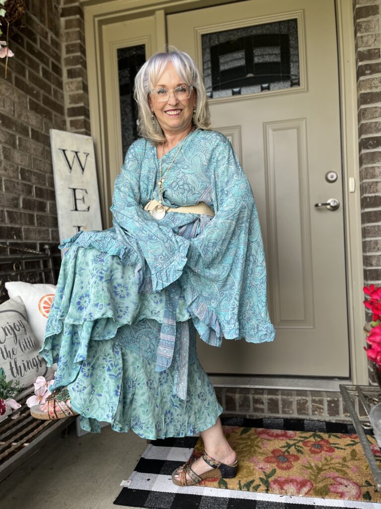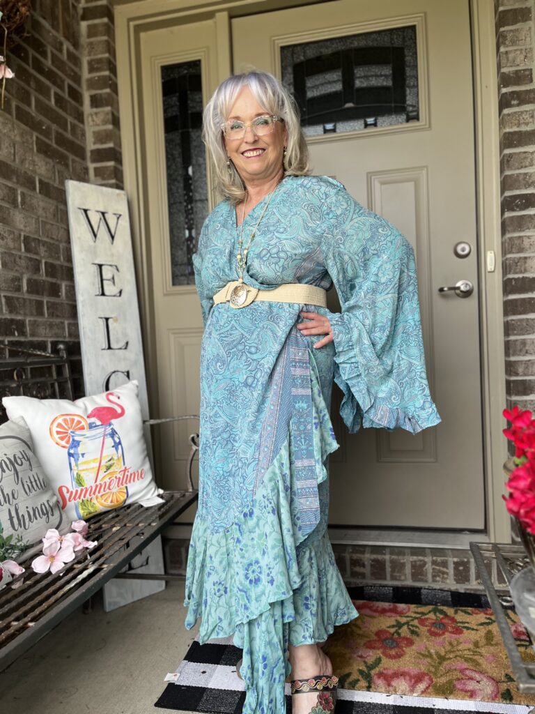 Thanks, Shelbee! I kept looking at the painting but on different devices. It wasn’t until I really looked at it on my laptop that I saw so many greens. But, I had already committed to the blue! The only problem with that wonky piece is it wraps around my legs as I walk. I honestly wish I knew what they were doing with it on the Kantha Bae site. I don’t follow them anymore as my email and my feeds on social were just inundated!