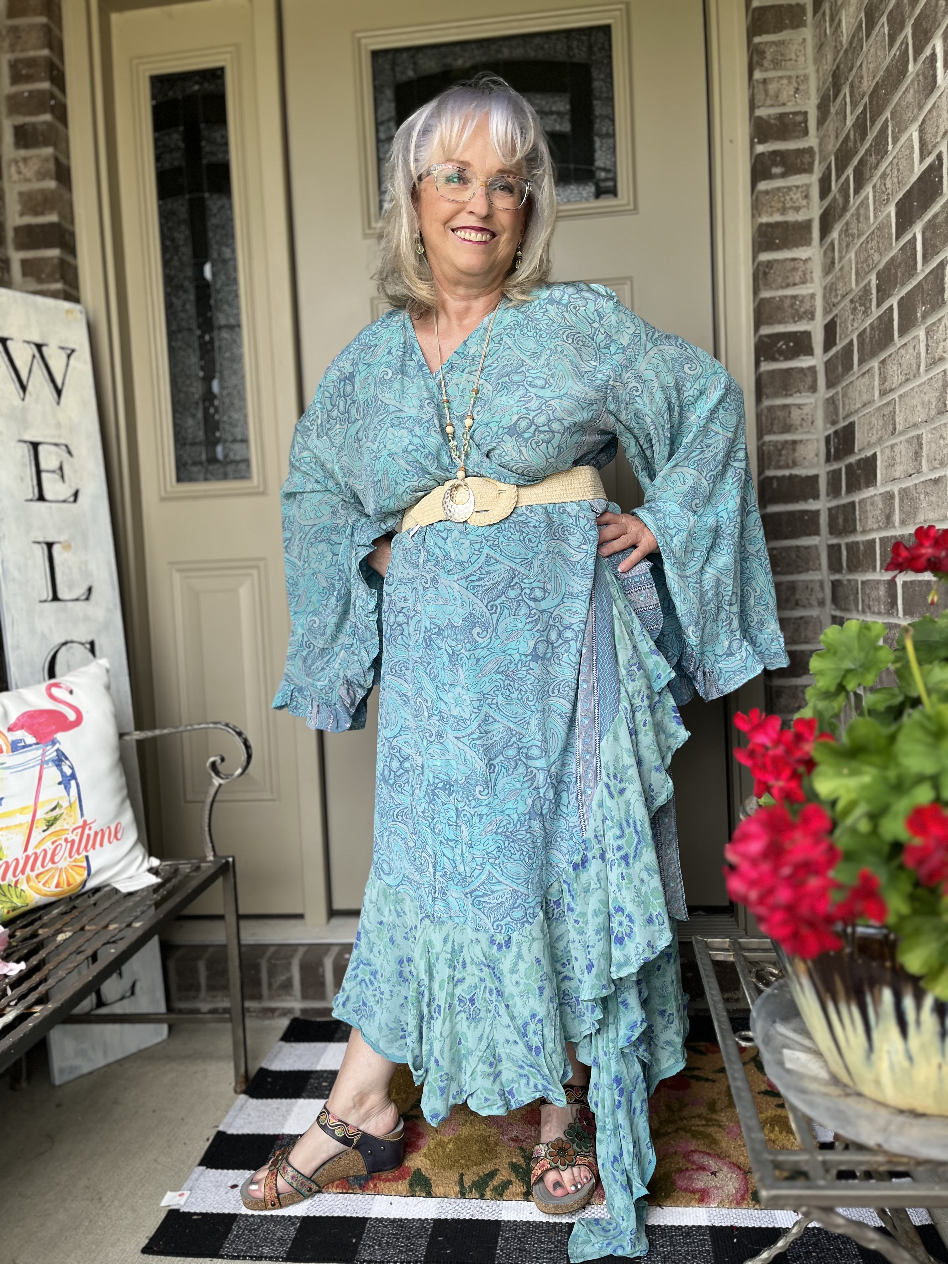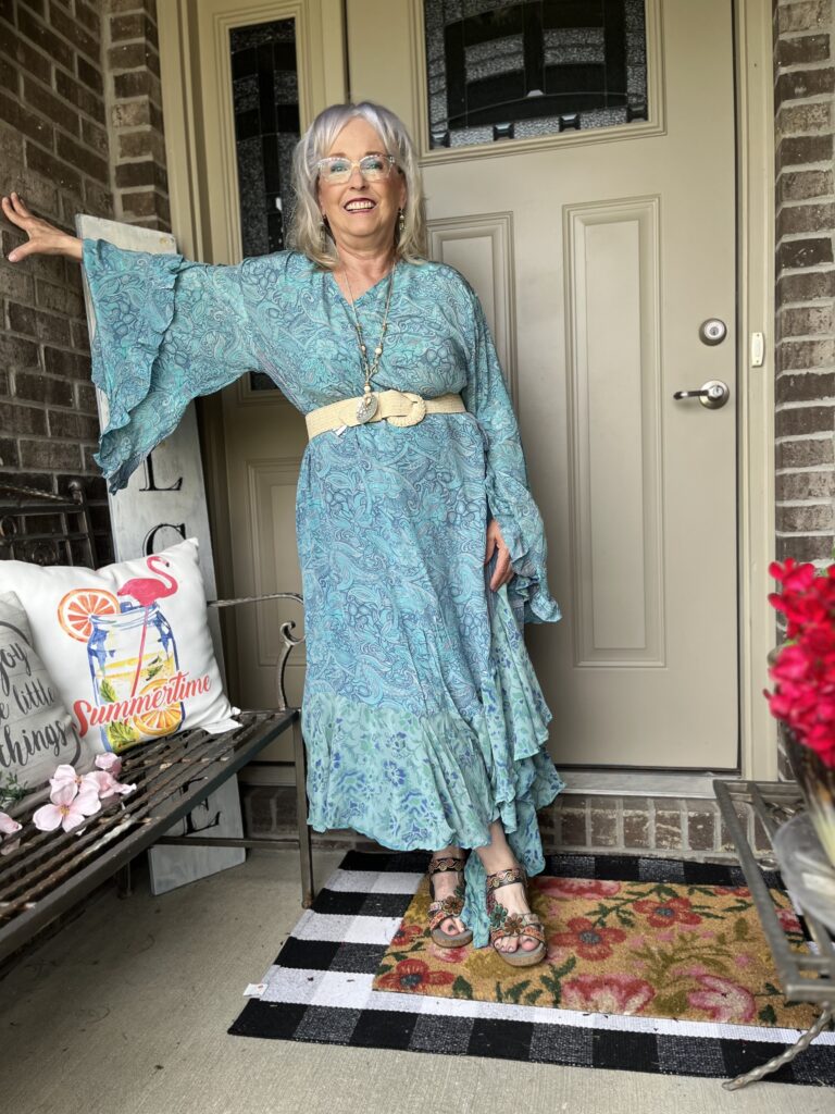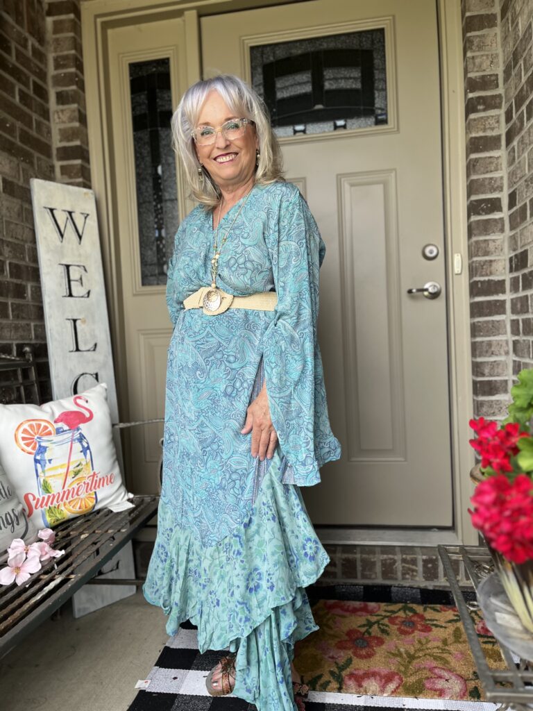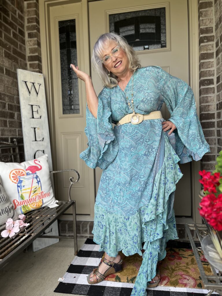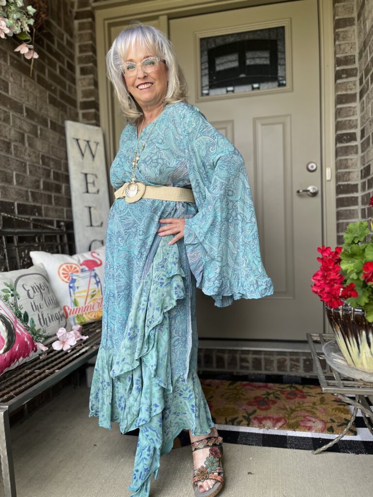 Thanks, Shelbee! I kept looking at the painting but on different devices. It wasn’t until I really looked at it on my laptop that I saw so many greens. But, I had already committed to the blue! The only problem with that wonky piece is it wraps around my legs as I walk. I honestly wish I knew what they were doing with it on the Kantha Bae site. I don’t follow them anymore as my email and my feeds on social were just inundated!