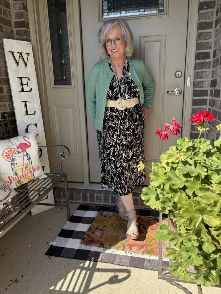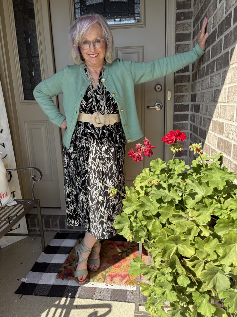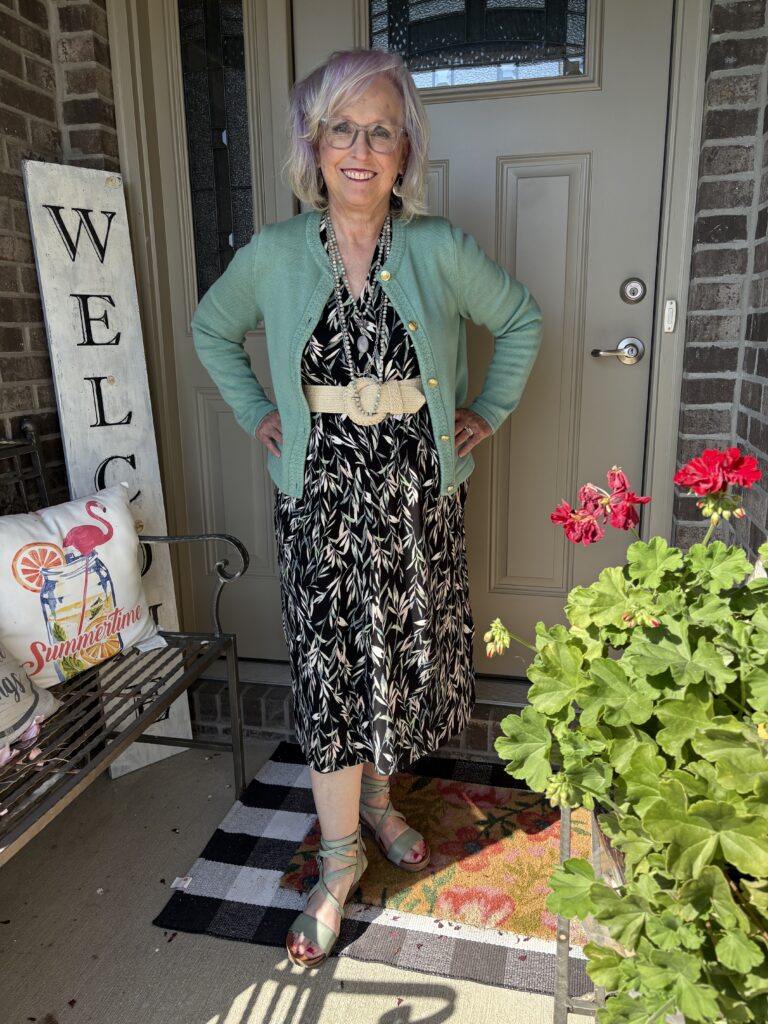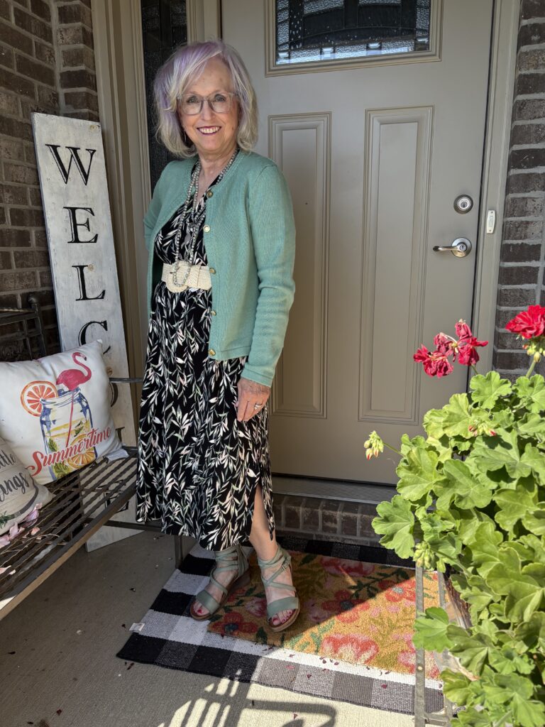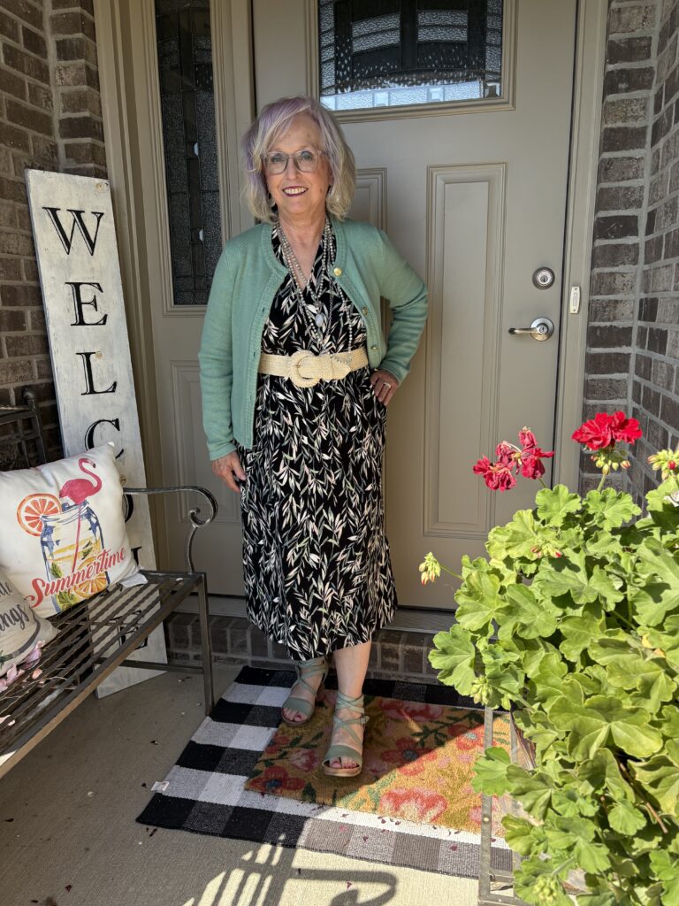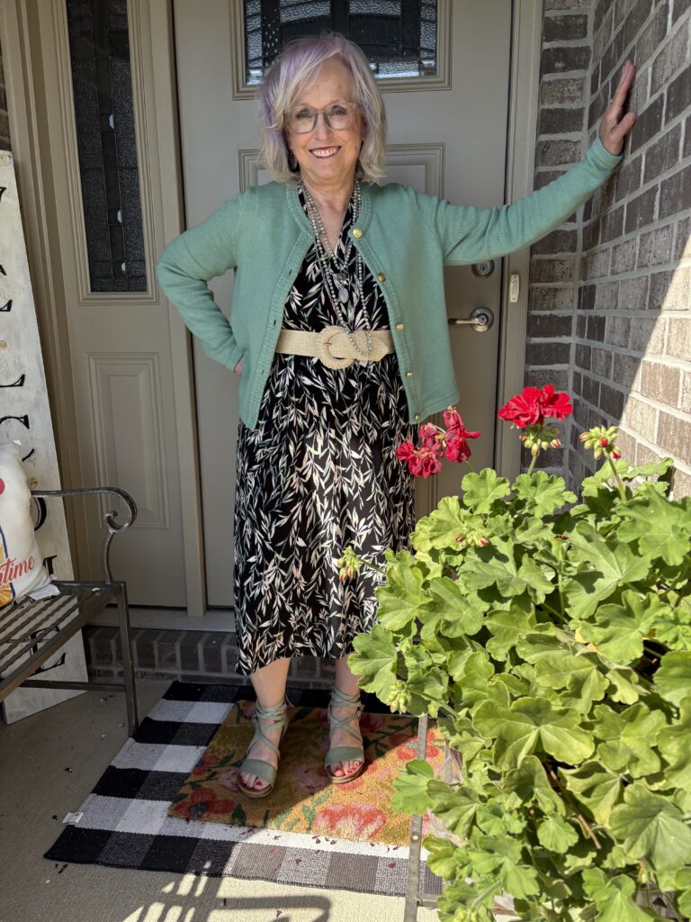 Thank you, Jill! That means a lot to me. The dress is sleeveless, and I knew the church would be freezing. The cardigan was necessary, but it looked so shapeless. Then, I remembered how adding a belt could draw the eye there and create the illusion of a shape.