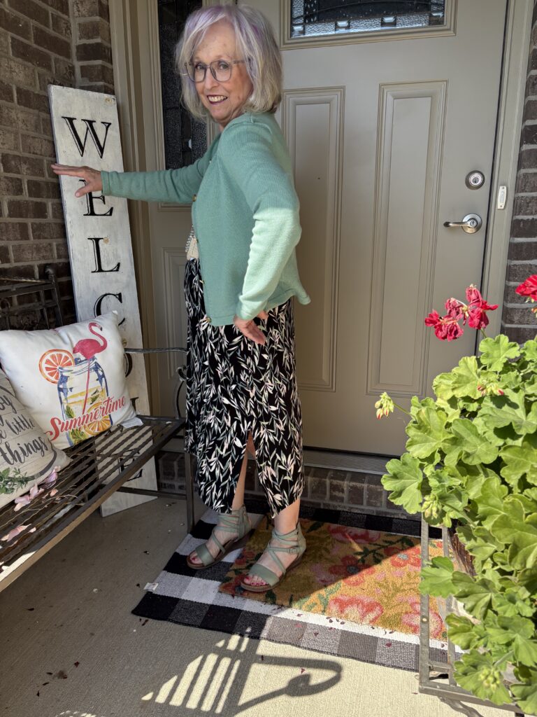I think your outfit looks “modern” with a vintage vibe. Vintage is modern now, isn’t it? What’s old is new! In any case you look lovely! I love the jade shade cardigan and sandals and the FAITH necklace!