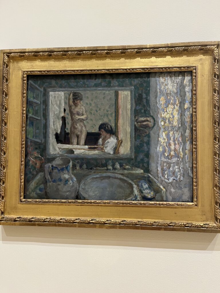Our next piece of art is by Pierre Bonnard who attended both the École des Beaux-Arts and the Académie Julian. In addition to that, Bonnard was also a lawyer! You’ll notice the beginnings of a pull away from that academic art influence. There’s a hint of Impressionism, yet we still see that one hallmark…an idealized representation. You can’t really tell from this painting, The Mirror in the Green Room, but we would actually be standing where the women were. It kinda blows your mind when you realize that. Like Degas, he didn’t like en plein air and would sketch or even work from photographs. Bonnard was a founding member of Les Nabis, a group that transitioned academic art to Impressionism then Post-Impressionism and on to Modernism.