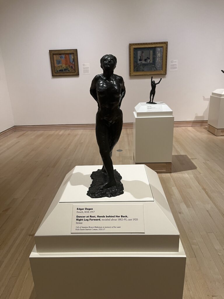 You may know Degas for his paintings of ballerinas. This sculpture was the result of several sketches and was cast about 50 years after his death. Degas was a bit of a curmudgeon. He really didn’t seem to like anyone! He and Bouguereau attended the École des Beaux-Arts but not at the same time. Degas is often considered the father of Impressionism, but he rejected that, preferring the term, Realist. He didn’t like the en plein air mode of painting which many Impressionists used. This was out in the air, and the artists would begin and finish a piece in one sitting, taking advantage of the light. I think the academic art movement of practicing until perfect was burned deep into Degas. He was also known as a copyist, another technique of the academies. Copyists would, literally, sit in art museums and copy a piece or a portion of a piece. Degas’ favorites were Michelangelo, Raphael, and…I always pause here because someone will, inevitably, say, “Donatello or Leonardo!” But, the third was Titian. The copies were not made to be sold but to hone their craft. Their aim was to create a highly polished three-dimensional look on two dimensions.