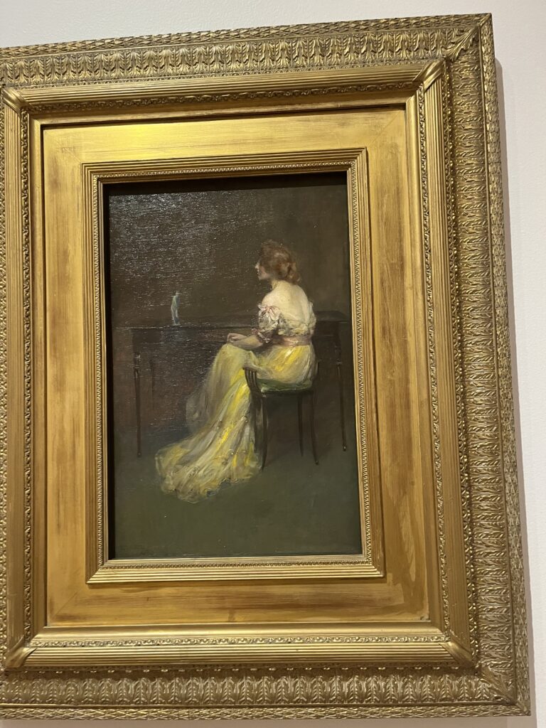 I love this next piece. One of the things I like is that it’s relatively small. This is The Statuette by Edward Augustus Bell. He studied at the Bavarian Royal Academy and resided in Munich for ten years. When he returned to the US, Bell’s work became more and more figurative and were, like our painting, usually of women gracefully appearing in the painting, usually with an object d’art. These tended to reflect what society thought women of that era should be doing.