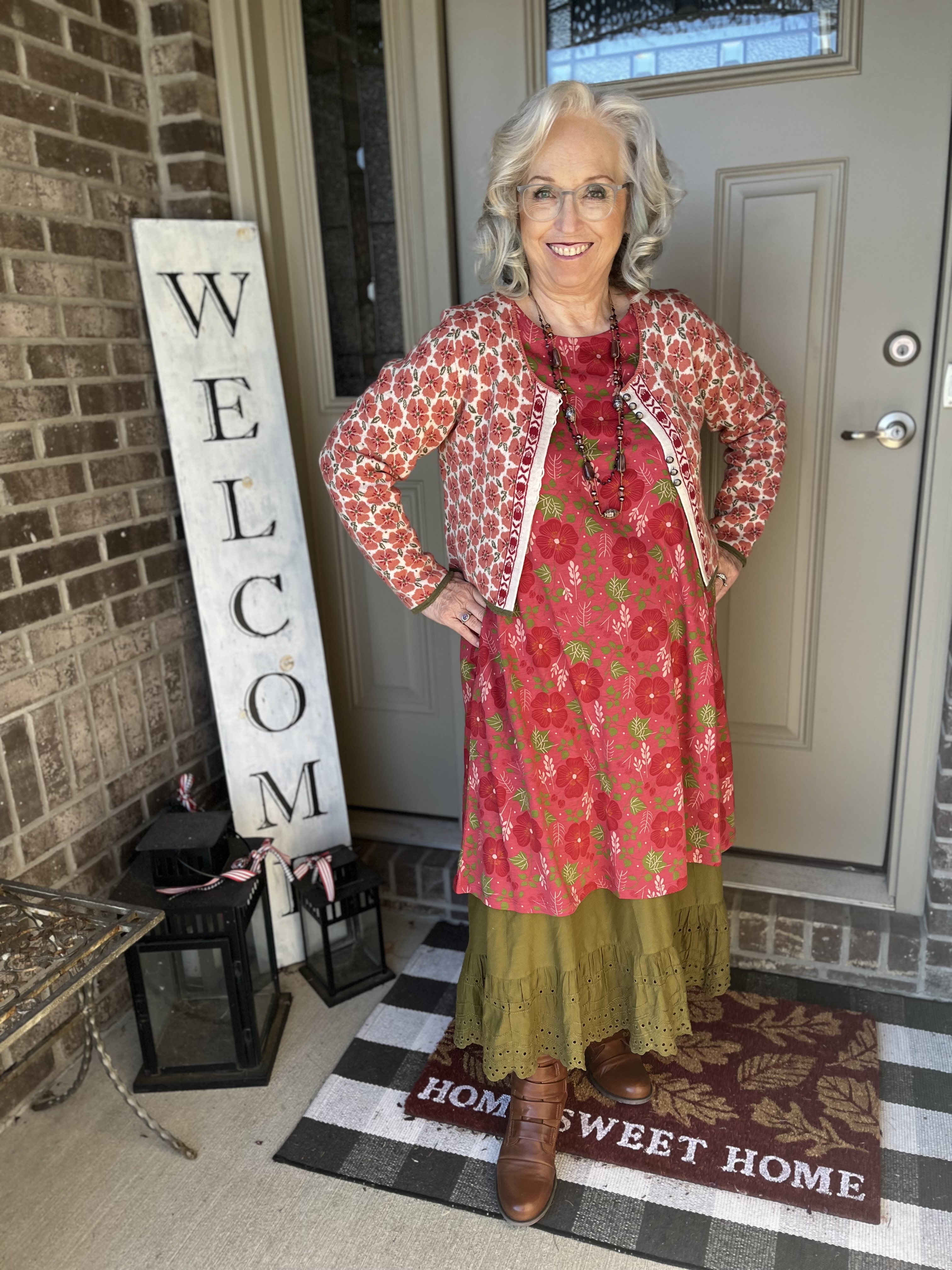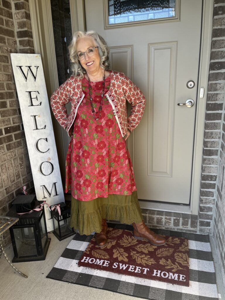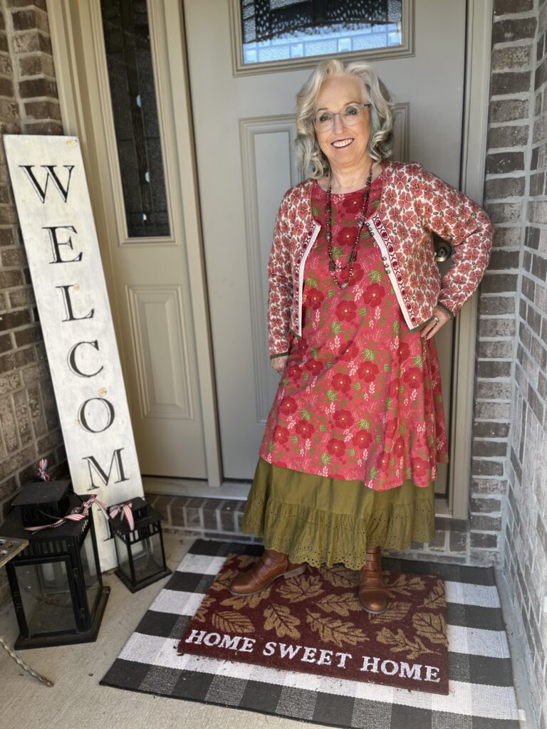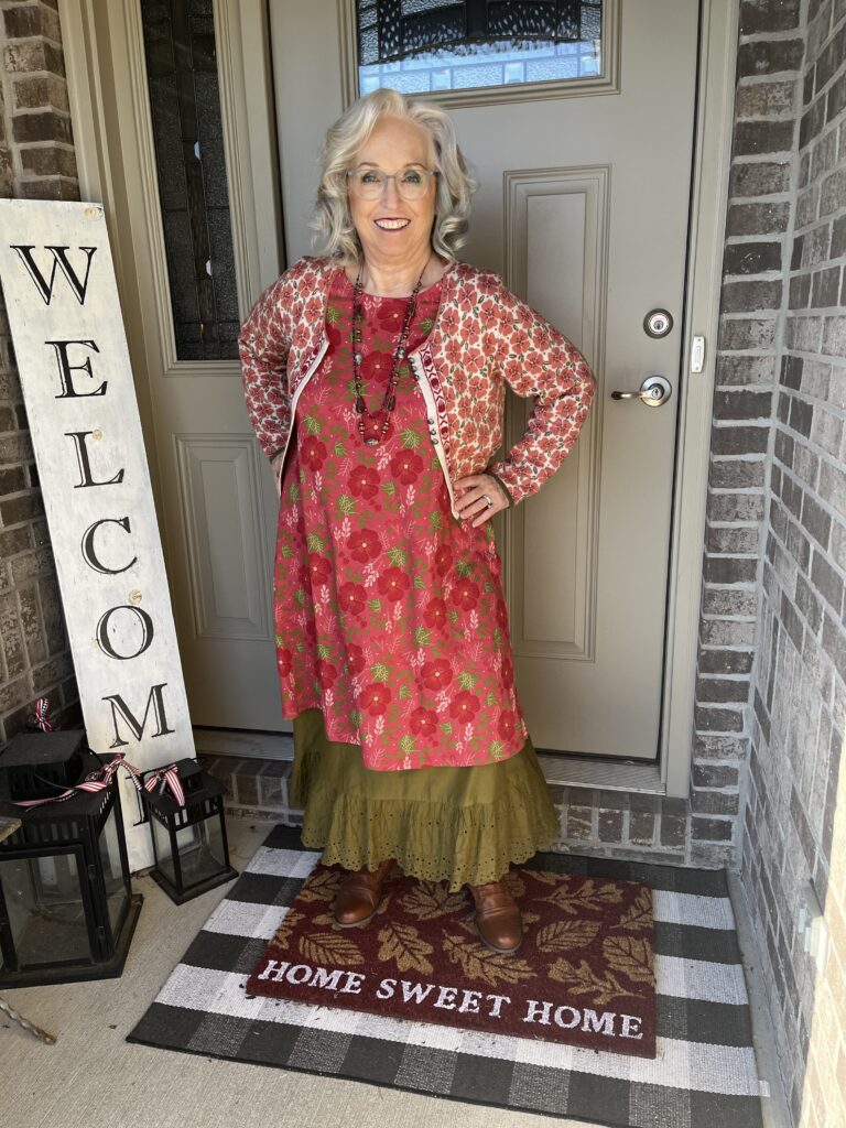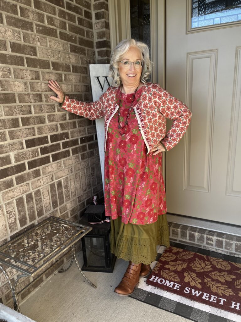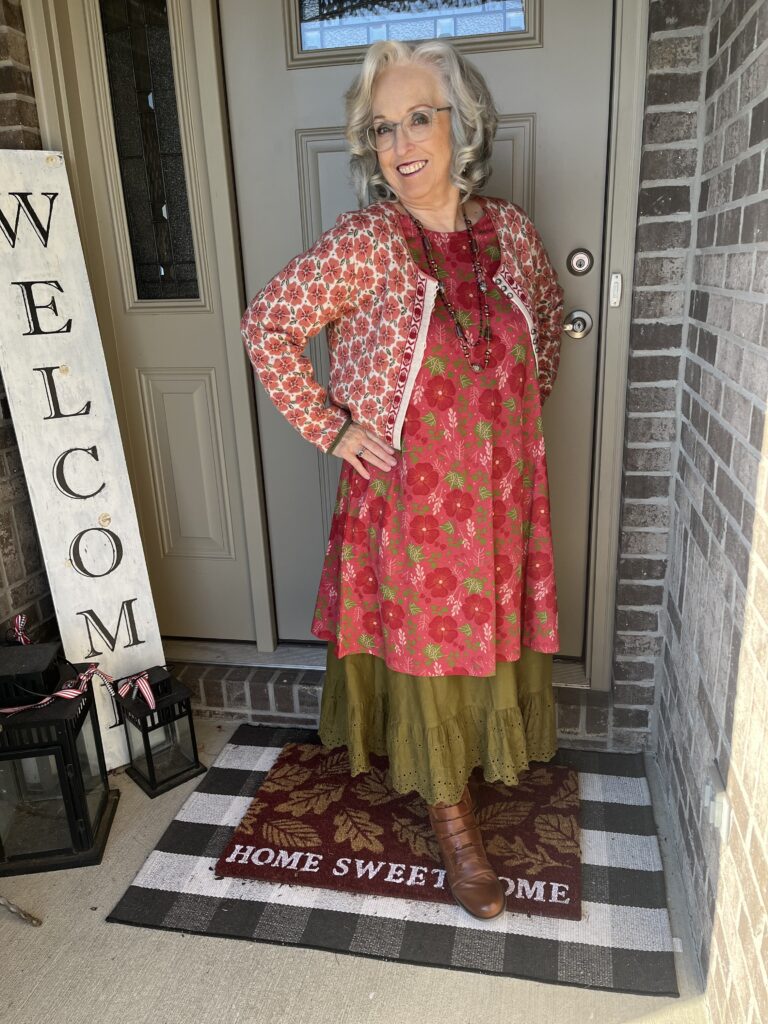 Thanks, Jodie! I kinda cheated on the mixing of prints because this cardigan and dress are shown together in the collection. I really was so lucky to grow up in the neighborhood I did. Everyone knew everyone else, and if you did something wrong, you could be sure your mom would know about it before you got home! Sure, there were bad things, too. My dad had his first heart attack when he was 38 which means I was 9 or 10. This was back when they just kept the patient in the hospital on bed rest for several weeks. But, I prefer to remember him as the fun loving guy he was. I just really wish I’d had more years to reflect back upon. My mom and I truly were cut from the same cloth, but we were also very close. When she died, there were all these things I knew she wanted that my sisters didn’t know. My oldest sister said, “You may have fought like cats and dogs, but you were the closest one to her.” And, she was right!