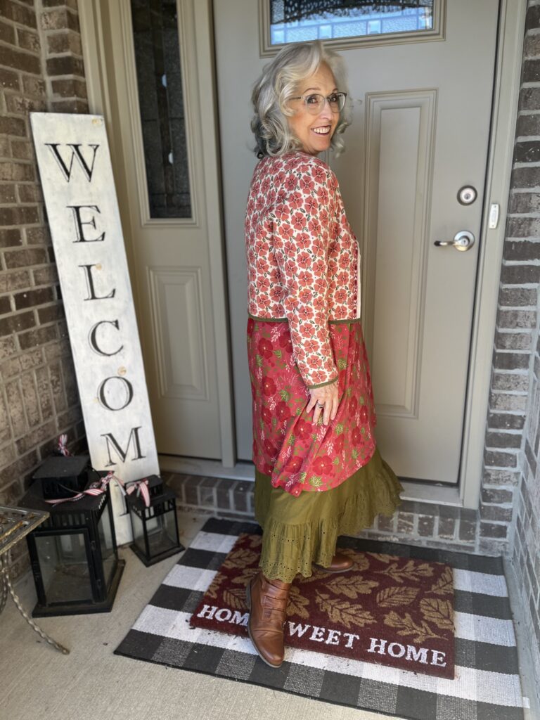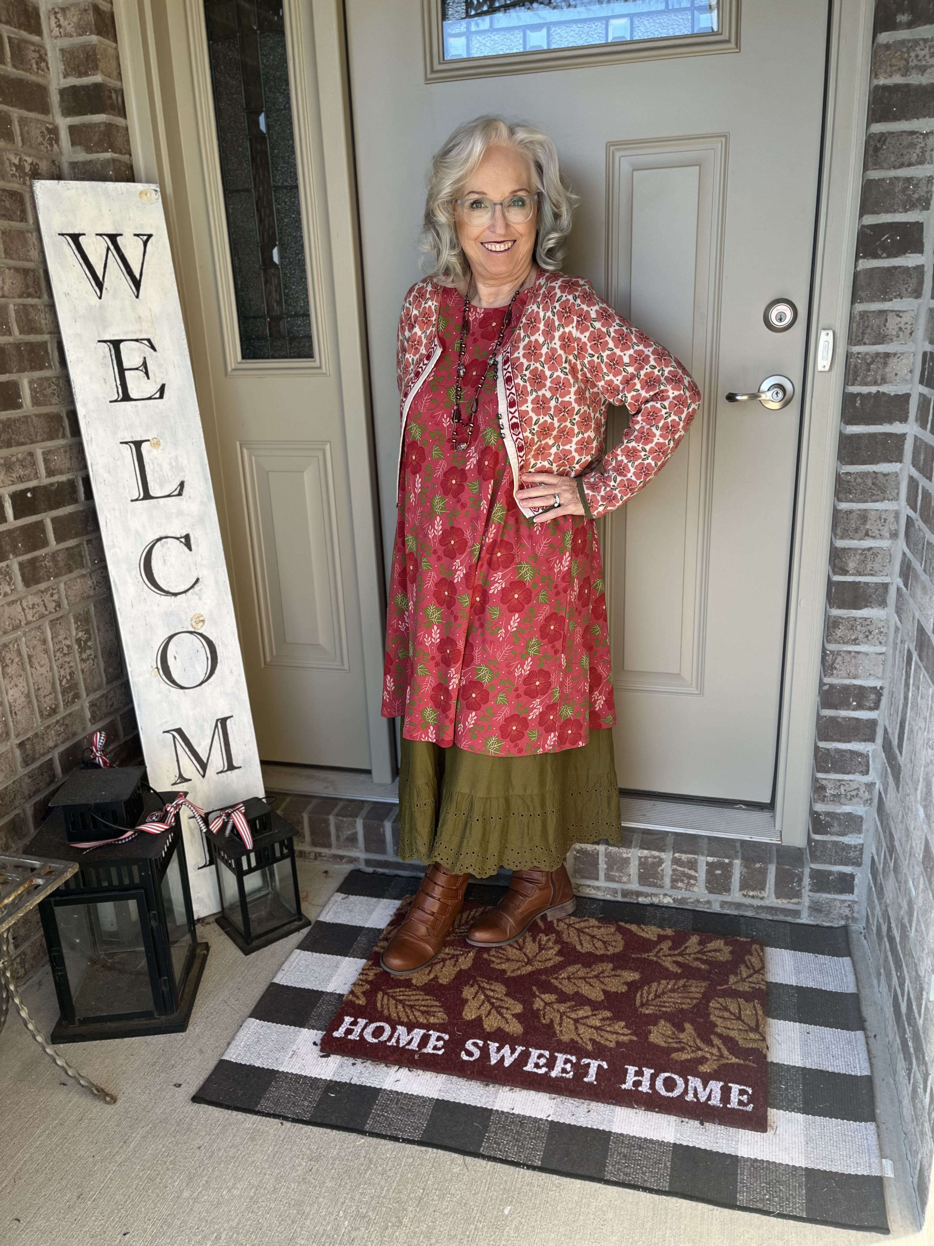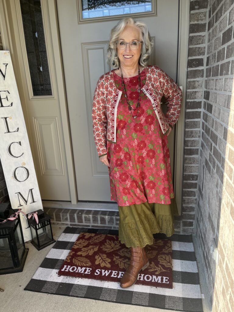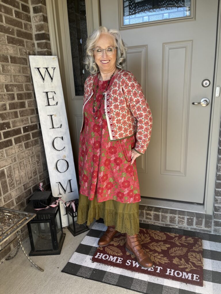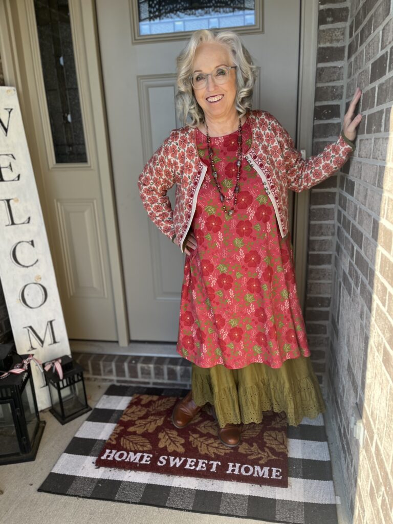 Thanks, Jodie! I kinda cheated on the mixing of prints because this cardigan and dress are shown together in the collection. I really was so lucky to grow up in the neighborhood I did. Everyone knew everyone else, and if you did something wrong, you could be sure your mom would know about it before you got home! Sure, there were bad things, too. My dad had his first heart attack when he was 38 which means I was 9 or 10. This was back when they just kept the patient in the hospital on bed rest for several weeks. But, I prefer to remember him as the fun loving guy he was. I just really wish I’d had more years to reflect back upon. My mom and I truly were cut from the same cloth, but we were also very close. When she died, there were all these things I knew she wanted that my sisters didn’t know. My oldest sister said, “You may have fought like cats and dogs, but you were the closest one to her.” And, she was right!